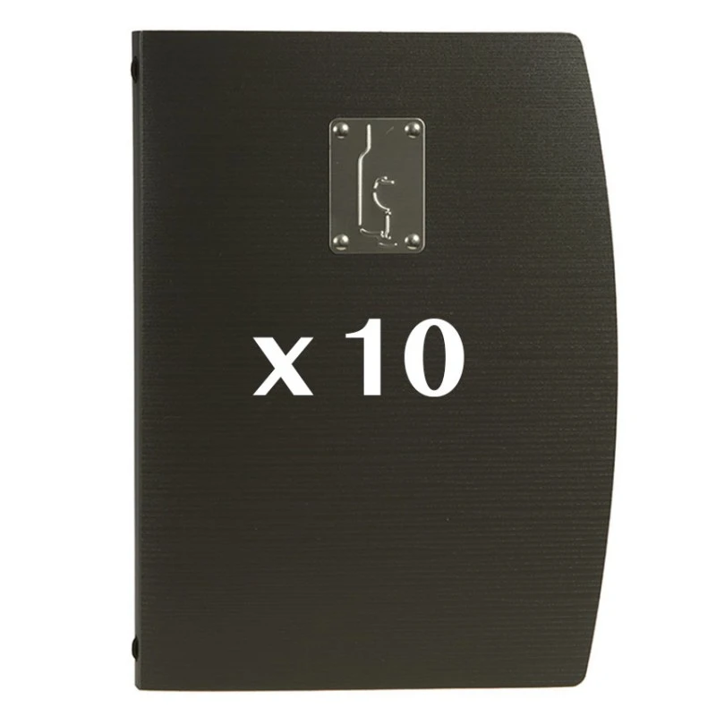 Lot de 10 cartes des vins / cartes des boissons modèle Rio de couleur noir.