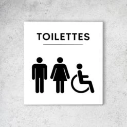 Pictogramme Panneau Signalétique Format 20 Cm X 20 Cm En Dibond Blanc Picto Noir – Modèle WC Trio