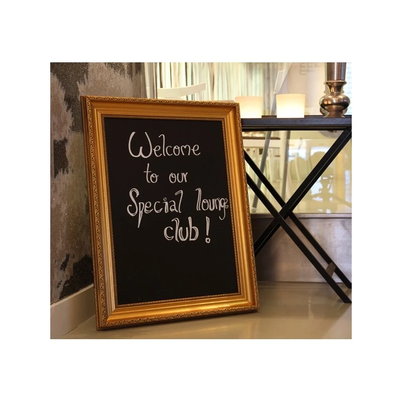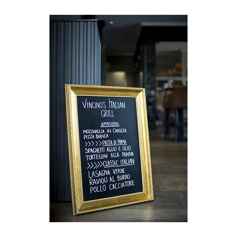 Ardoises murales avec cadre doré pour apporter une touche luxueuse et moderne. Prévues pour une utilisation en intérieur. Ces ardoises sont en bois dur et sont résistantes aux rayures, aux UV et aux déformations dues à la chaleur. Deux petits crochets sont fournis pour accrocher les ardoises. A utiliser avec les feutres- craies Securit® (non inclus).Taille intérieure ardoise 70×100 : 57 x 82 cm