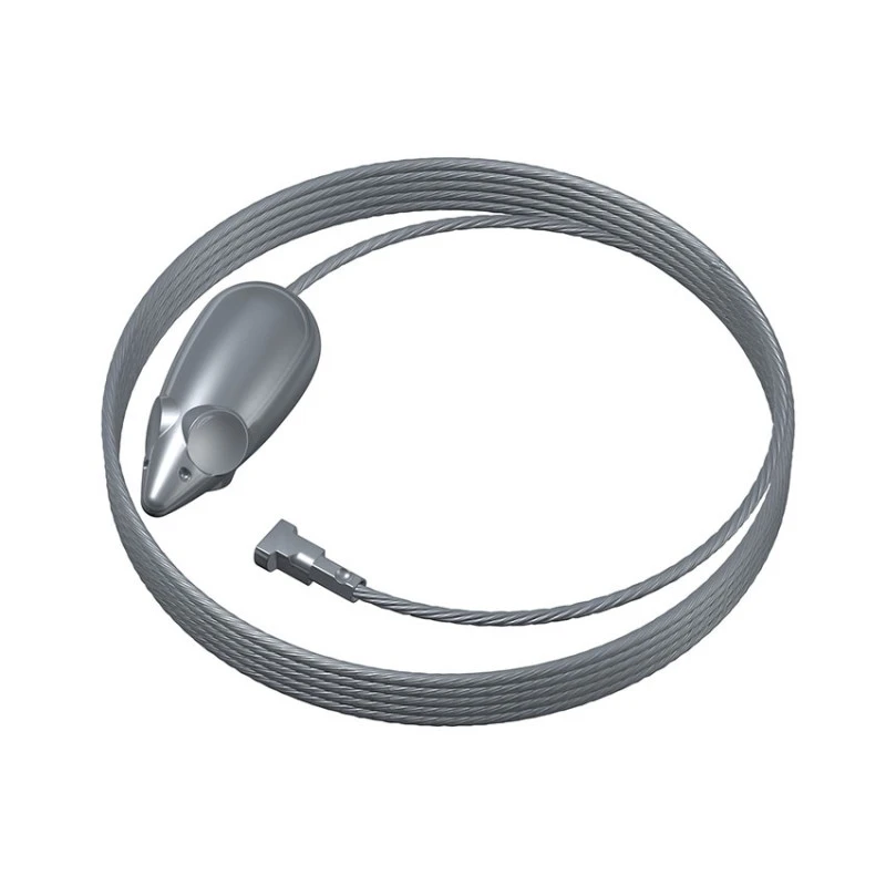 Le câble métallique alu est lesté à son extrémité avec un poids en forme de souris.