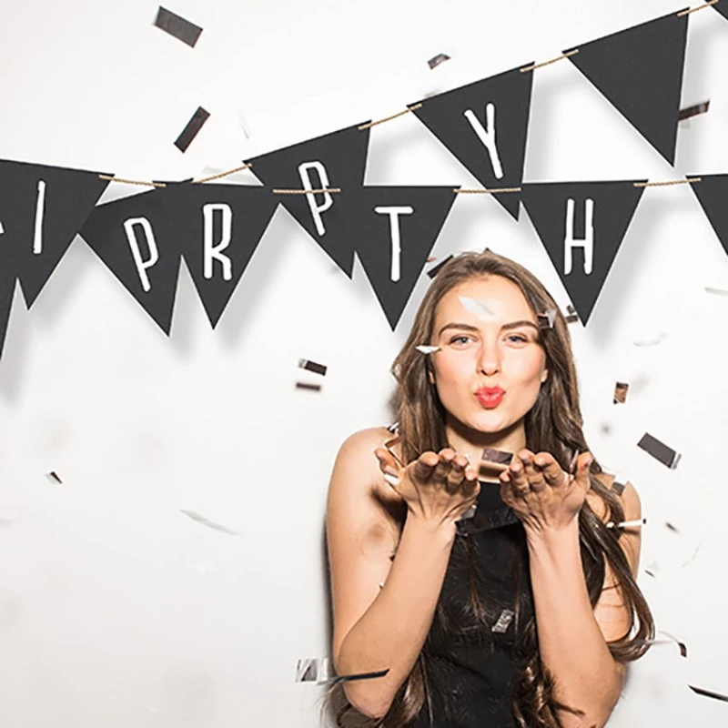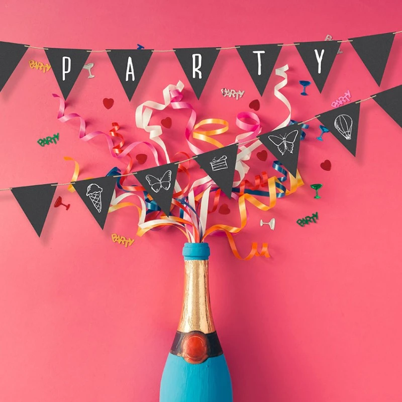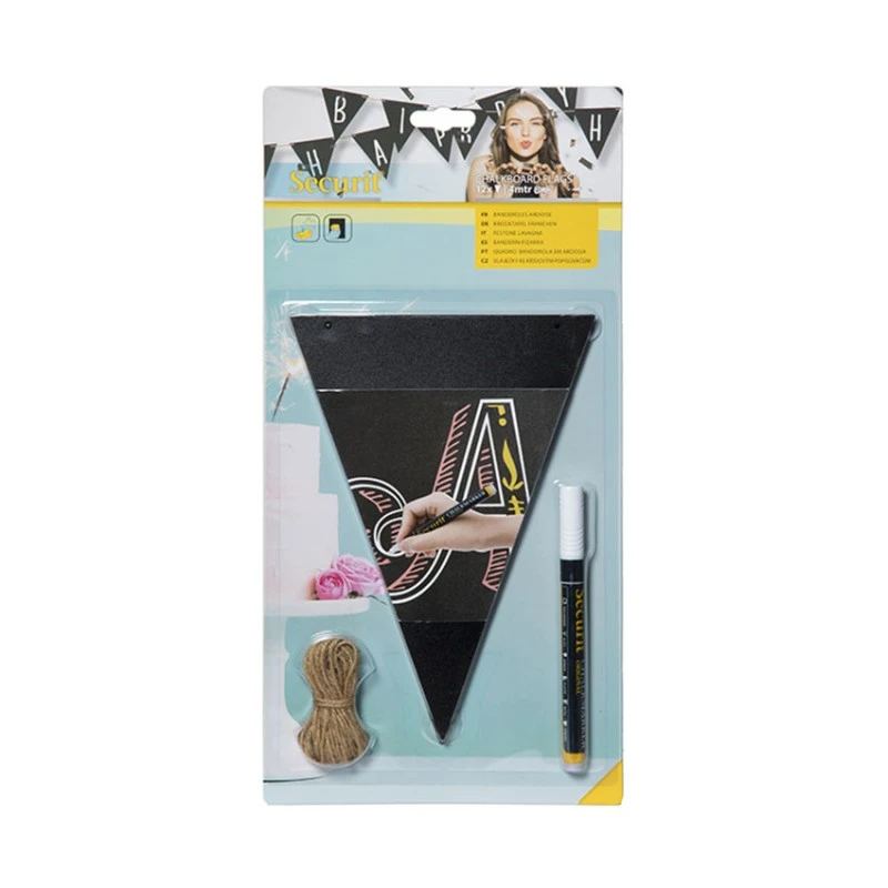 Securit® banderole de drapeaux ardoises. Incluant feutre craie gratuit. Longueur 4m comprenant 12 drapeaux. Drapeau de 15 x 21 cm.
