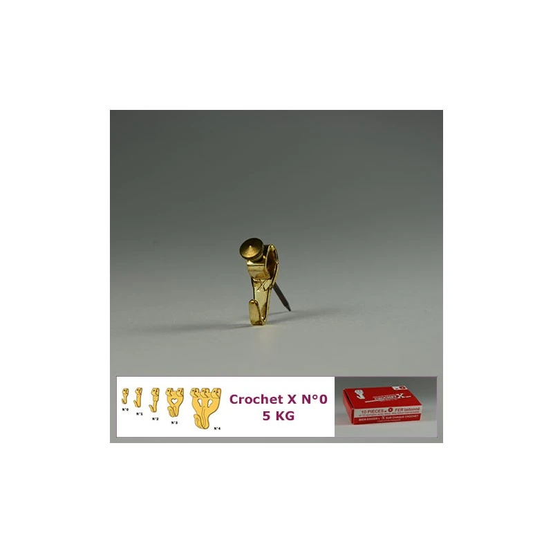 Boite de 100 crochets X n°0. La solution idéale pour fixer un cadre ou un tableau sur un mur en placoplatre, platre ou bois. Les crochets X sont proposés ici dans une boite de 100 crochets pour accrocher des cadres d’un poids maximum de 5 kg.