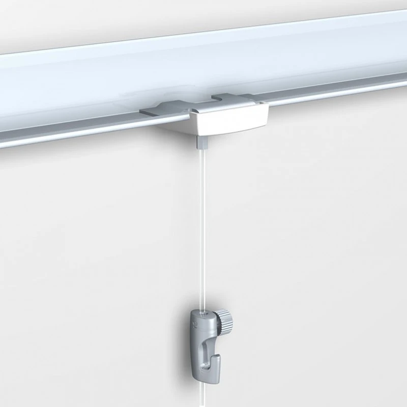 Le kit Ceiling Hanger est la solution idéale pour accrocher un tableau sur le rail périphérique d’un faux plafond à dalle.