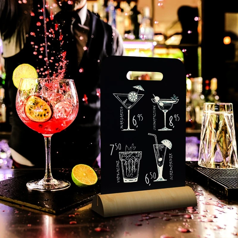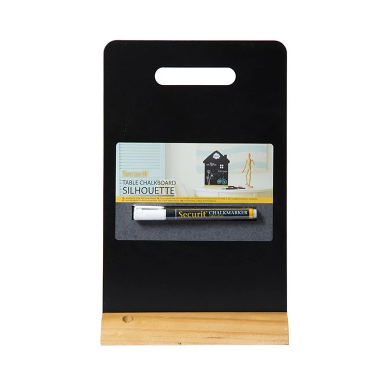 Securit® ardoise de table avec poignée et pied en bois. Livré avec feutre blanc inclus.