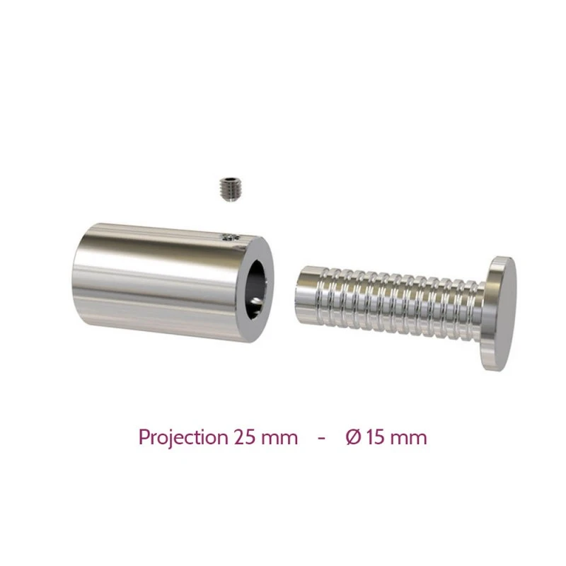 Entretoise Percée En Inox Poli Ø 15 Mm Projection 25 Mm – Fixation Murale De Signalétique, Pictogrammes, Panneaux Plexiglass