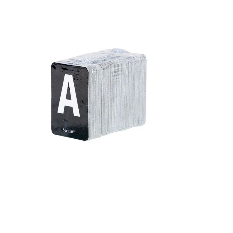 ‘Securit® Etagère d »un mètre (4 x 25cm) en bois noir pour poser une composition de lettres. Lettres bicolores (une face blanche, une face noire). Le kit contient 169 lettres, symboles et chiffres. Fixation adhésive.’