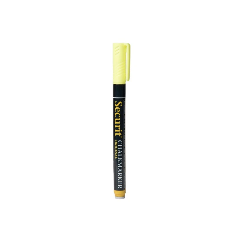 Feutres-craie Jaune à encre liquide pointe fine 1-2mm, modèle Small. Ce feutre vous permet d’écrire à la craie avec un stylo / feutre sans laisser de poussière. Utilisable sur tableaux noirs et blancs, ardoises pour hôtel restaurant, vitrine de boutique.