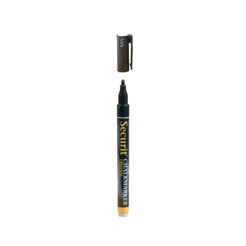 Feutres-craie Noir à encre liquide pointe fine 1-2mm, modèle Small. Ce feutre vous permet d’écrire à la craie avec un stylo / feutre sans laisser de poussière. Utilisable sur tableaux noirs et blancs, ardoises pour hôtel restaurant, vitrine de boutique.