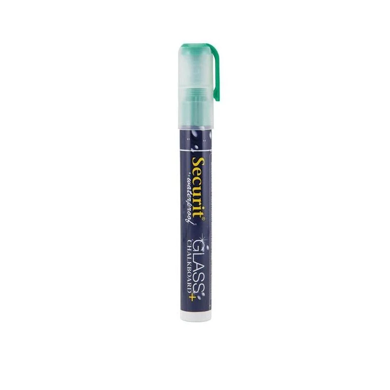 Feutres-craie waterproof Vert à encre liquide pointe biseautée 2-6 mm, modèle Médium. Ce feutre vous permet d’écrire à la craie avec un stylo / feutre sans laisser de poussière. Utilisable en extérieur sur tableaux noirs et blancs, ardoises pour hôtel restaurant, vitrine de boutique.