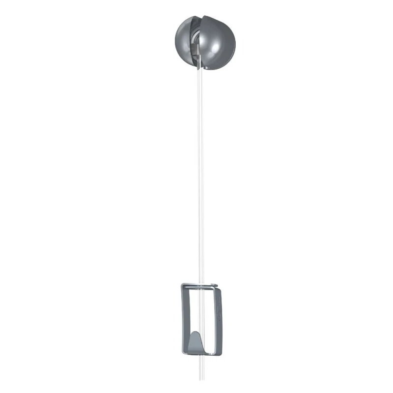 Dévissez l’embout en forme de dôme, insérez le câble perlon Slider puis revissez le dôme. Ce dernier se visse au plafond ou au mur. Ensuite, faites glissez le crochet sur le câble (fonction autobloquante). Une fois placer à l’endroit choisit, vous pouvez afficher un cadre, un tableau, une photo, ect.