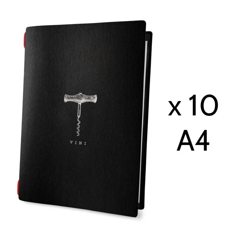 Lot de 10 protèges menu / cartes des vins format A4 écologique de couleur noir aspect fibres lisses au toucher.