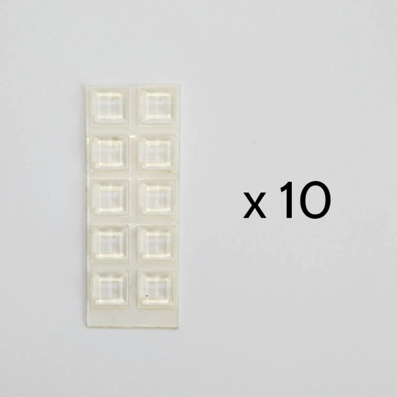 Plaque de 10 blocs / butées en caoutchouc transparents.