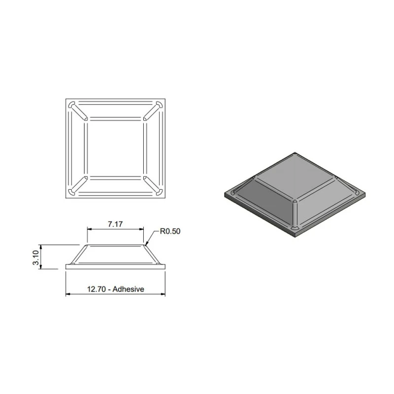 Dimensions d’une butée : 12,7 x 12,7 x 3,1 mm.