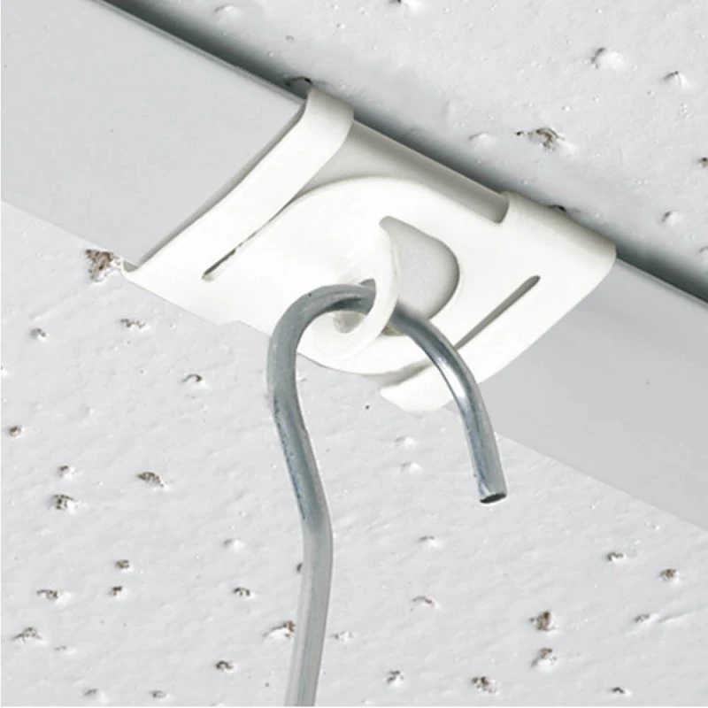 Pour un affichage suspendu, compléter ce lot de 10 crochets pour faux plafond avec des tiges ou des câbles et des crochets.