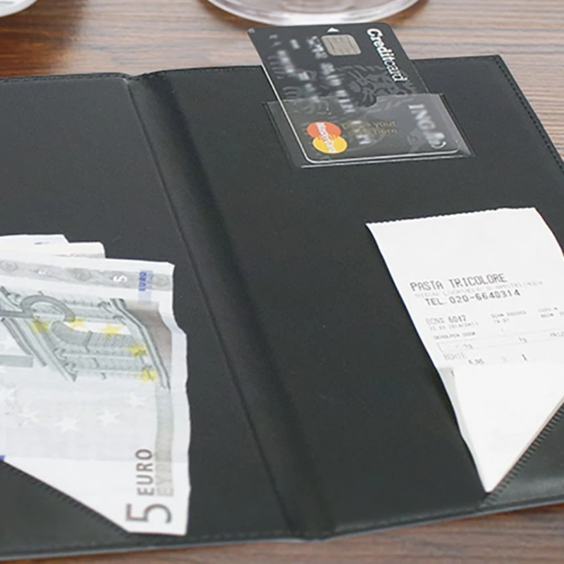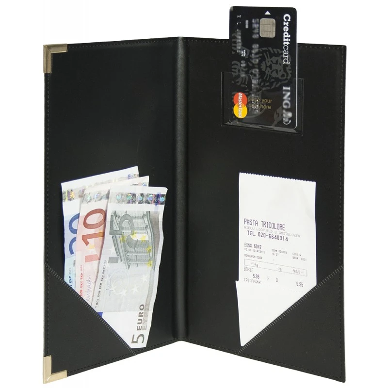 Lot de 10 porte-additions simili cuir de la gamme Classique- 23 x 13 cm. Souple et facile à nettoyer. Card et cash holder. Bords cousus.