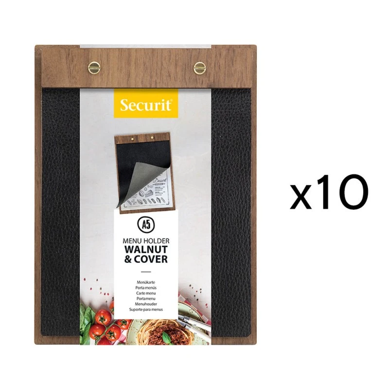 Lot De 10 Porte-menu Clipboard Format A5 En Bois De Noyer Et Simili Cuir – Présentation Menu Restaurant