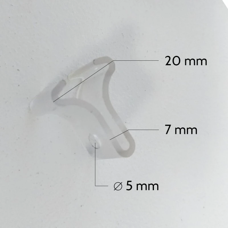 Dimensions (H x L x P) : 24 x 20 x 15 mm. Diamètre perforation : 5 mm (anse tige minimum 7 mm). Convient pour des charges légères.