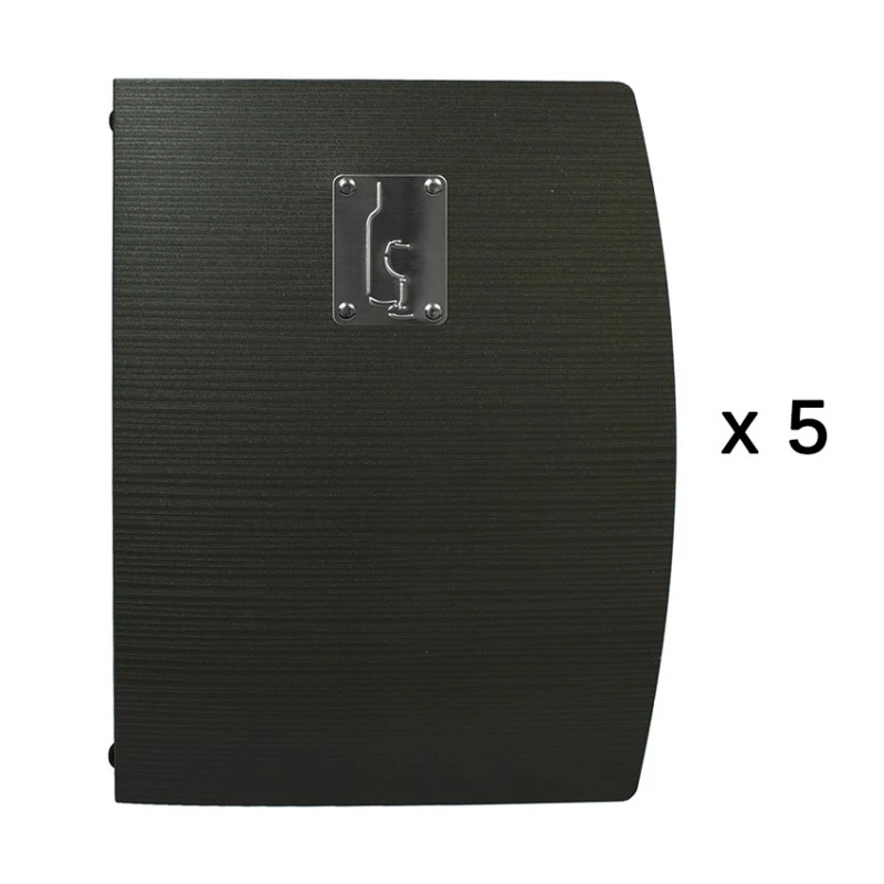 Ce lot de 5 protège-menus carte des vins est en plastique rigide et doté d’un double insert vous offrant 4 vues au format A4.
