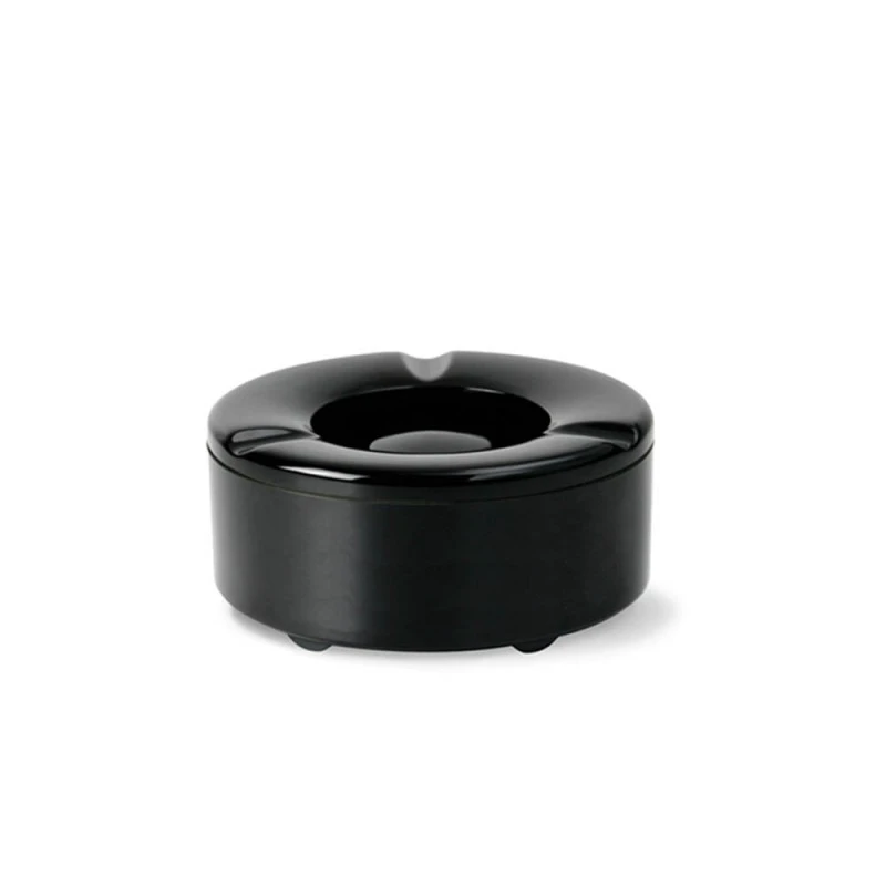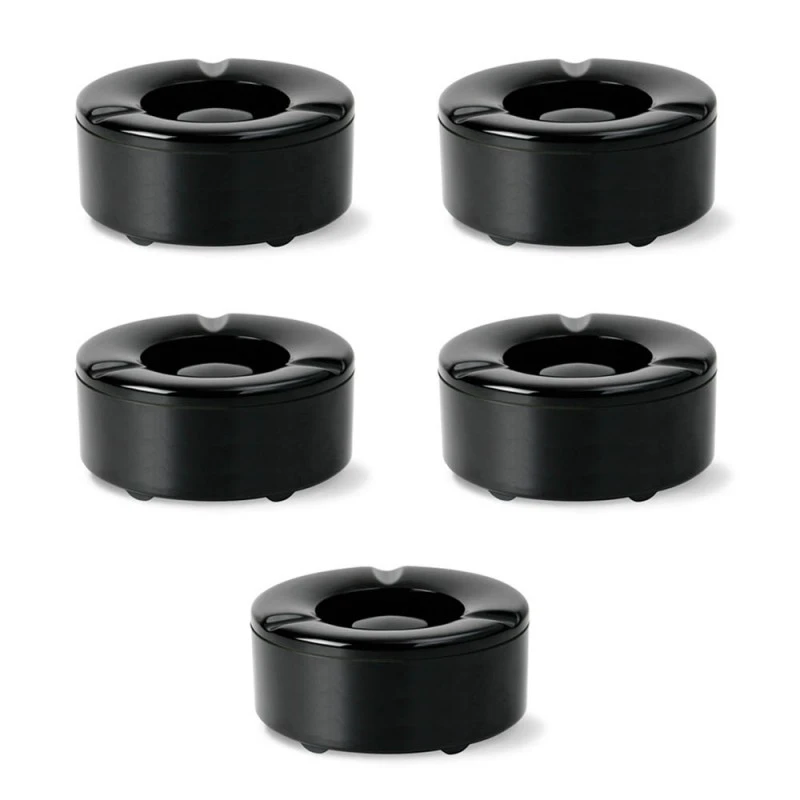 Lot de 5 cendriers de table en mélamine couleur noir d’un diamètre de 10 cm résistants aux cendres, UVs et intempéries.