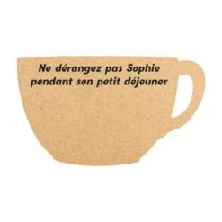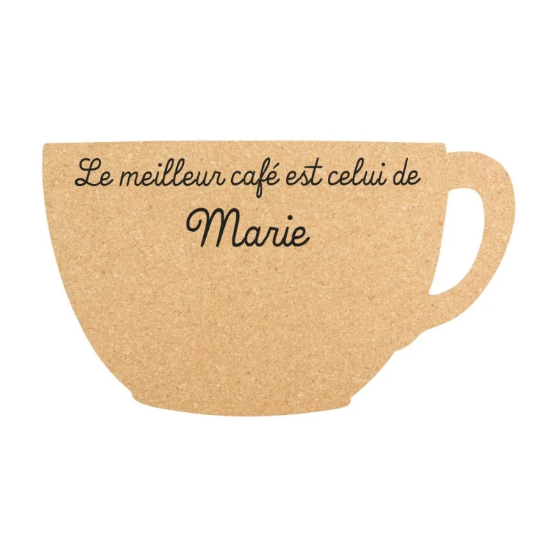 Panneau en liège en forme de tasse à personnaliser avec un prénom ou texte de votre choix.