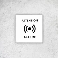 Pictogramme Panneau Signalétique Format 9 X 9 Cm En Plexi Picto Noir – Modèle Attention Alarme