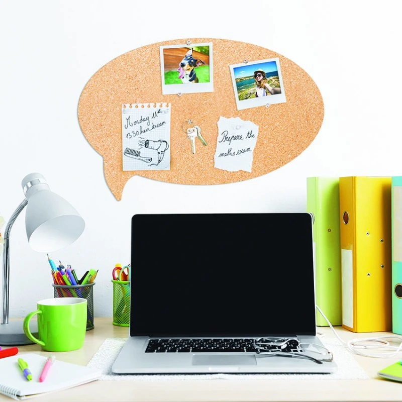 Securit® Silhouette Liège Pèle-mêle en liège forme de Bulle. Incluant kit de fixation ainsi que des pins. Dimensions 30x45cm