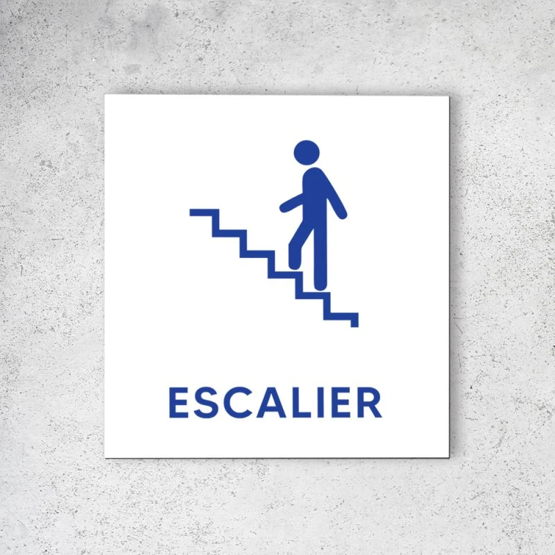 Pictogramme Panneau Signalétique Format 20 Cm X 20 Cm En Dibond Blanc Picto Bleu – Modèle Escalier Gauche