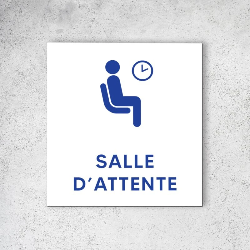 Pictogramme Panneau Signalétique Format 20 Cm X 20 Cm En Dibond Blanc Picto Bleu – Modèle Salle D’Attente