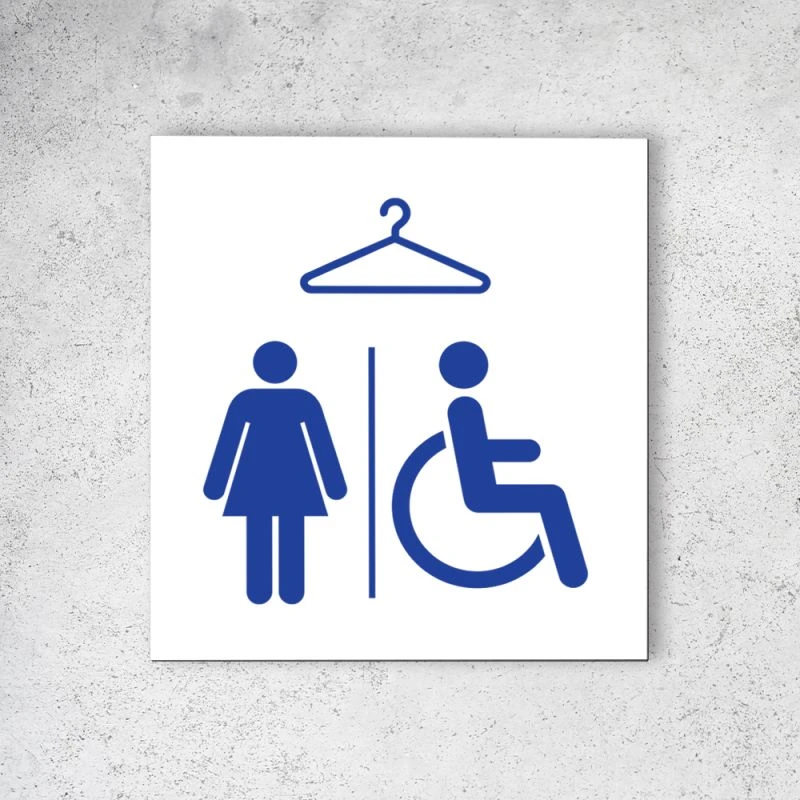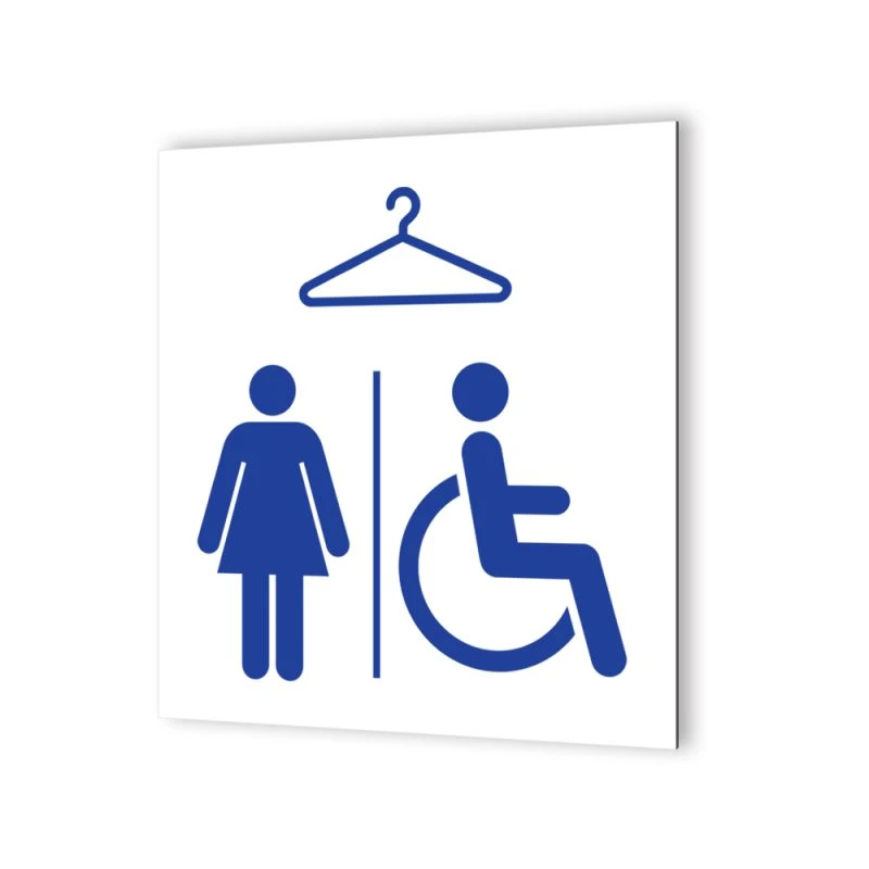 Pictogramme Panneau Signalétique Format 20 Cm X 20 Cm En Dibond Blanc Picto Bleu – Modèle Vestiaires Femmes Et PMR