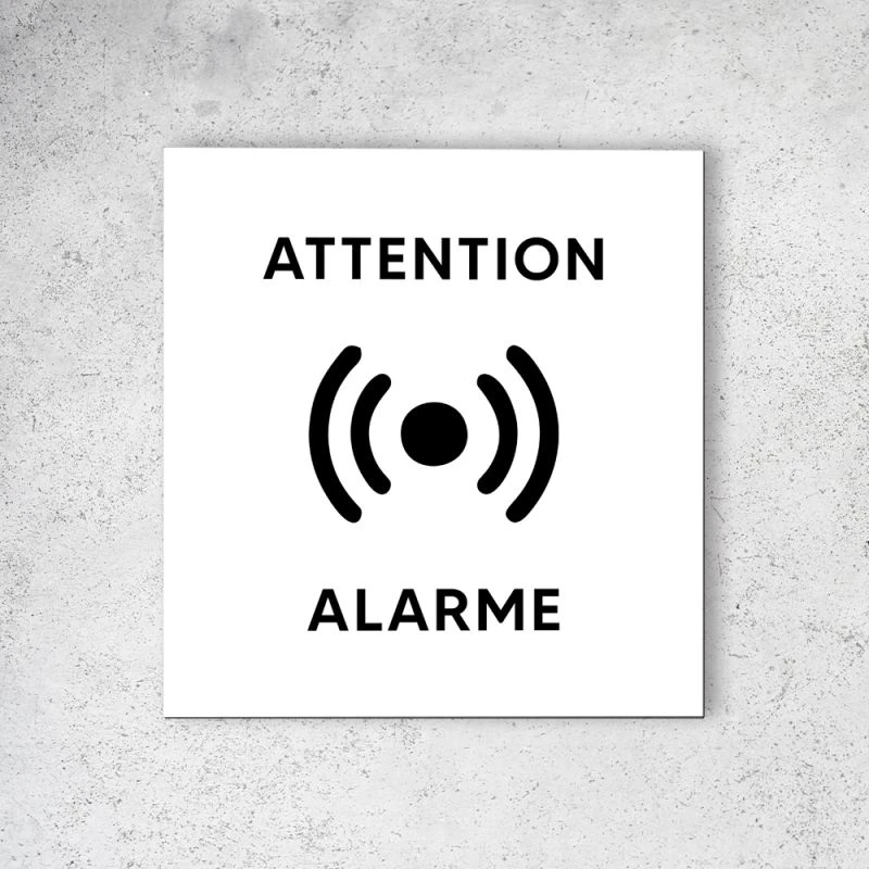 Pictogramme Panneau Signalétique Format 20 Cm X 20 Cm En Dibond Blanc Picto Noir – Modèle Attention Alarme
