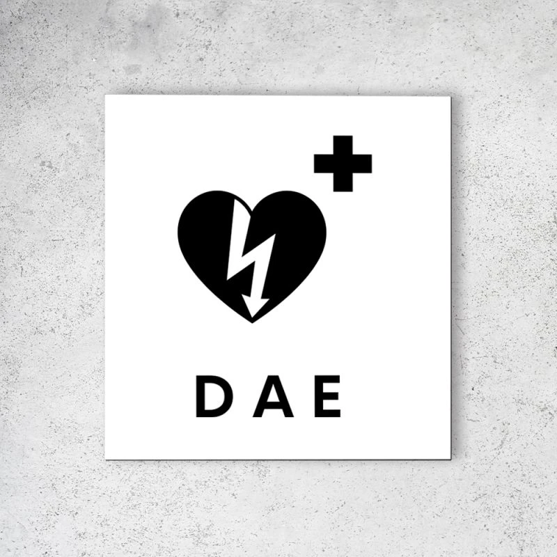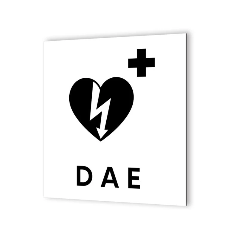 Pictogramme Panneau Signalétique Format 20 Cm X 20 Cm En Dibond Blanc Picto Noir – Modèle DAE Défibrillateur