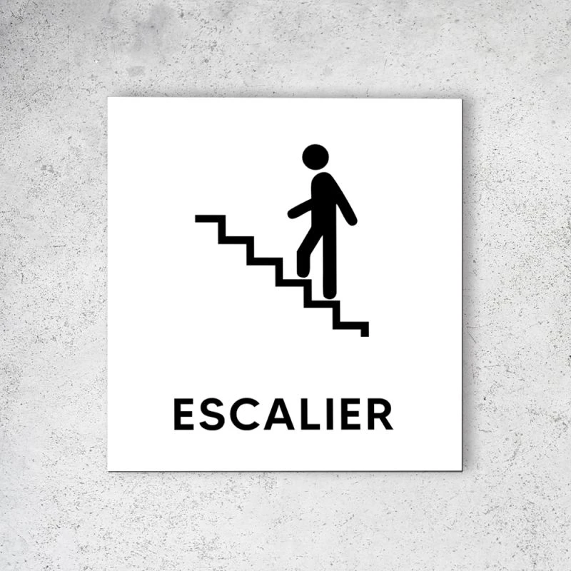 Pictogramme Panneau Signalétique Format 20 Cm X 20 Cm En Dibond Blanc Picto Noir – Modèle Escalier Gauche