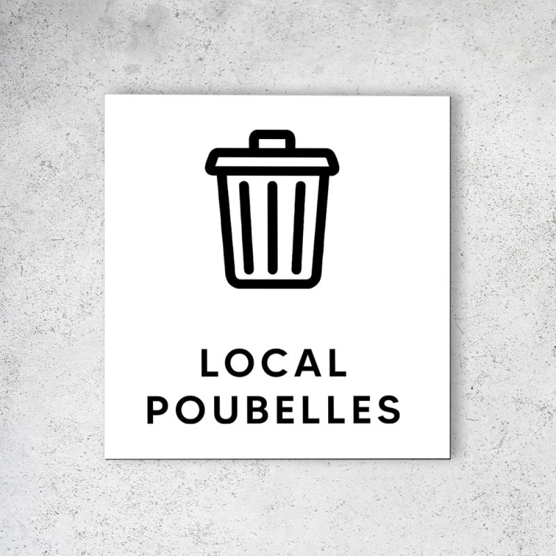 Pictogramme, panneau de signalétique, plaque de porte modèle Local poubelles. Parfait pour indiquer l’emplacement d’un local poubelles au sein d’une entreprise, mairie, copropriété, hôtel, restaurant, camping.
