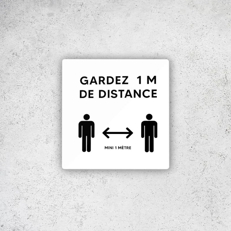 Pictogramme, panneau de signalétique, plaque de porte modèle Distanciation sociale. Convient pour rappeller aux usagers le maintient d’une distance d’un mètre entre eux.Texte 2