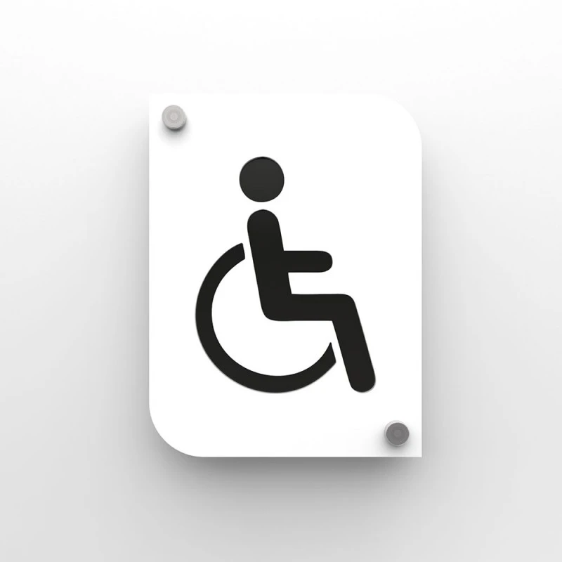 Pictogramme Plexi Toilettes Handicapés PMR Couleur Blanc – Signalétique Plaque De Porte Toilettes PMR