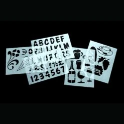 Set de 5 pochoirs avec lettres, chiffres, signes, pictogrammes. Idéal pour donner un effet uniforme et professionnel à vos supports. Facile et pratique, ces pochoirs vous feront gagner un temps précieux.