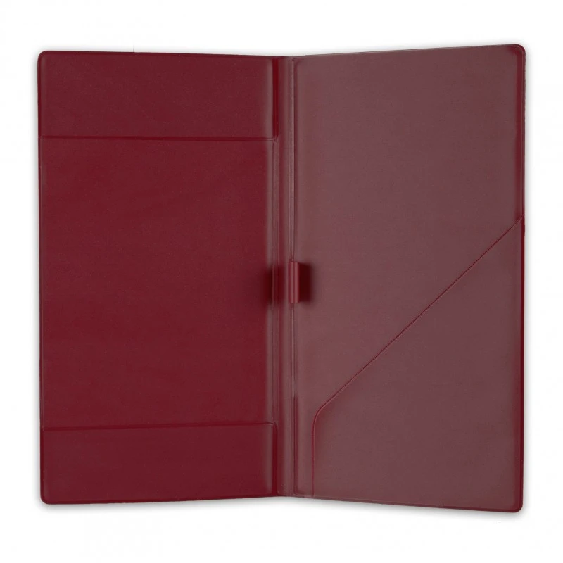 Porte-addition bordeaux de la gamme économique, modèle « risto ». Facile à nettoyer grâce à sa matière PVC, il s’accorde avec votre décoration du fait de son look élégant et moderne. Ce porte-addition contient 2 pochettes. Modèle de qualité, fabriqué en Italie.