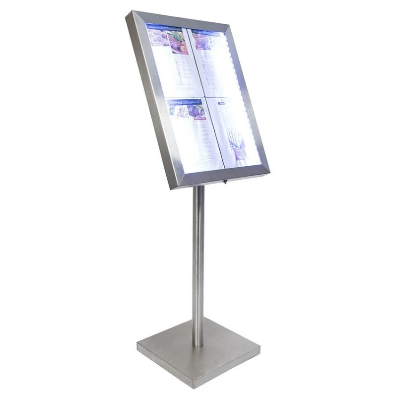 Porte-menu 4 X A4 Classic LED En Acier Inoxydable Avec Pied – Présentoir Menu Hôtel Restaurant