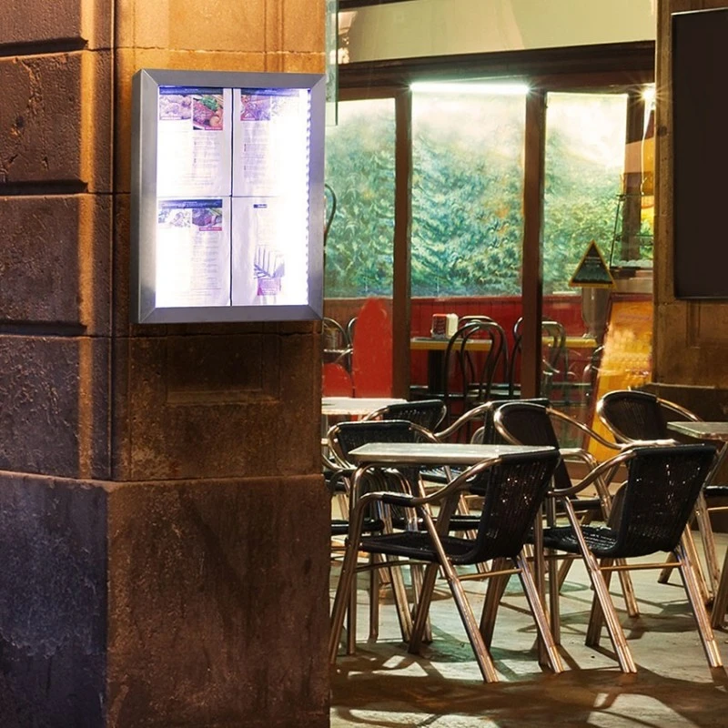Porte-menu Mural LED Gris Métallisé Format 6 X A4 – Présentoir Mural Menu Hôtel Restaurant