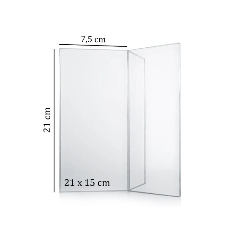 Présentoir pour menu de table ou porte affiche intérieur et extérieur. Porte menu de table en forme de Y, support triptyque pour affichage du menu, carte des boissons, desserts, … Porte affiche conçu en plexiglass transparent robuste. Formats compatibles : 3 feuilles 21 x 15 cm ou 3 feuilles recto verso 21 x 10,5 cm.