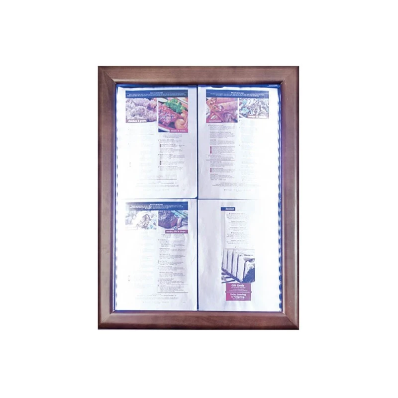 Porte-menu Mural 4 X A4 Classic LED En Bois Aspect Wengé – Présentoir Mural Menu Hôtel Restaurant