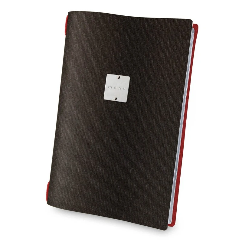 Protège Menu A4 Bi-couleur Marron / Rouge Aspect Toile De Jute