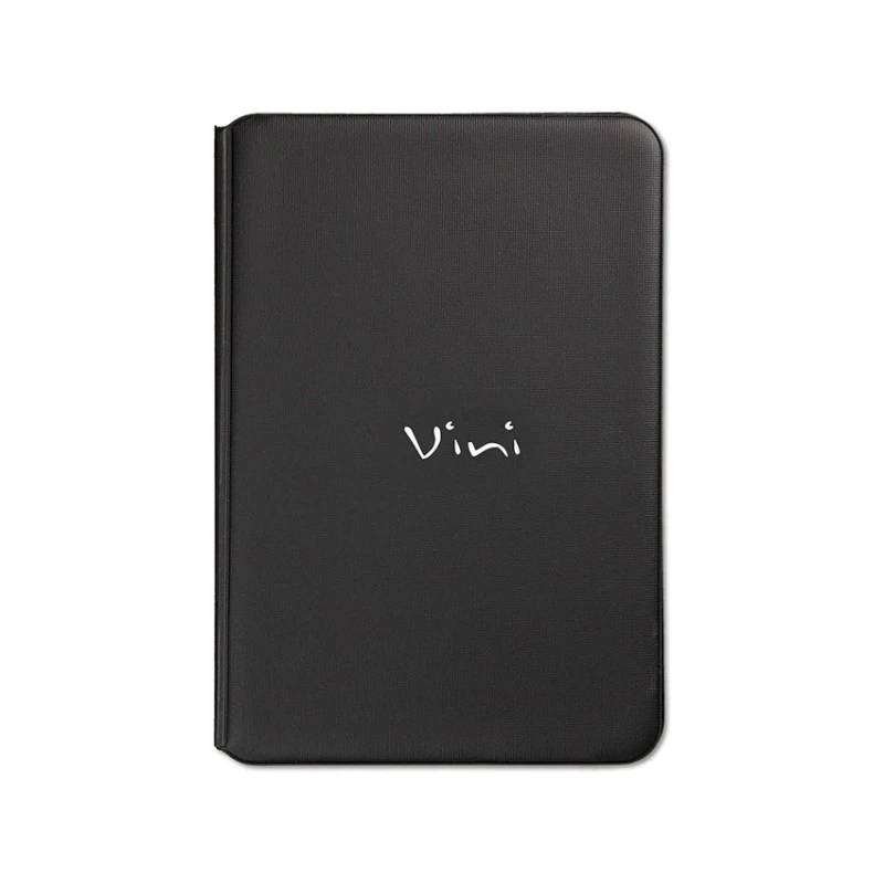 Protège-menu design noir modèle Toscana au format A5 avec inscription « Vini » type manuscrit.