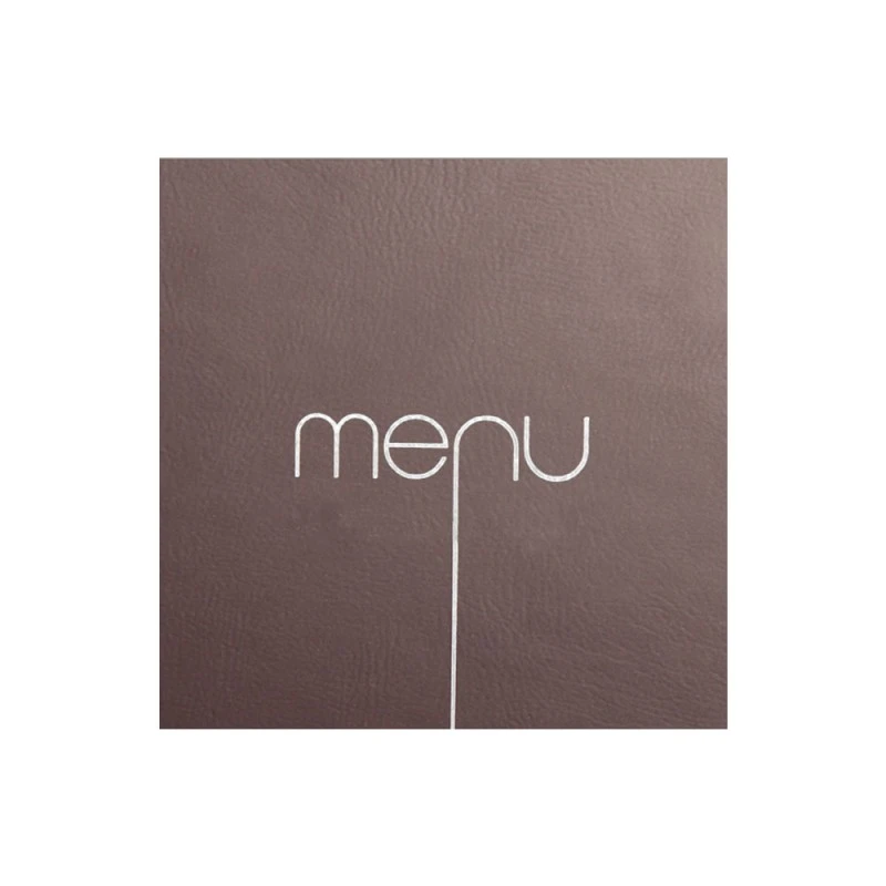 Protège menu modèle Risto de couleur marron possédant un format carré (21 cm x 21 cm). Inscription « Menu » sur la couverture.