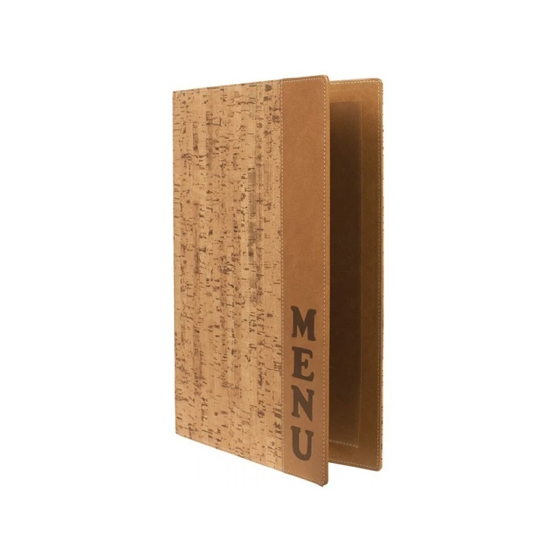 Protège-menus de la gamme Design A4, 1 double insert est inclus avec chaque protège-menu (présente 4 pages A4). Il est possible d’ajouter jusqu’à 10 insert soit 40 pages. Souple et facile à nettoyer. Corde élastique reliant les inserts. inscription « menu »en relief, bords cousus