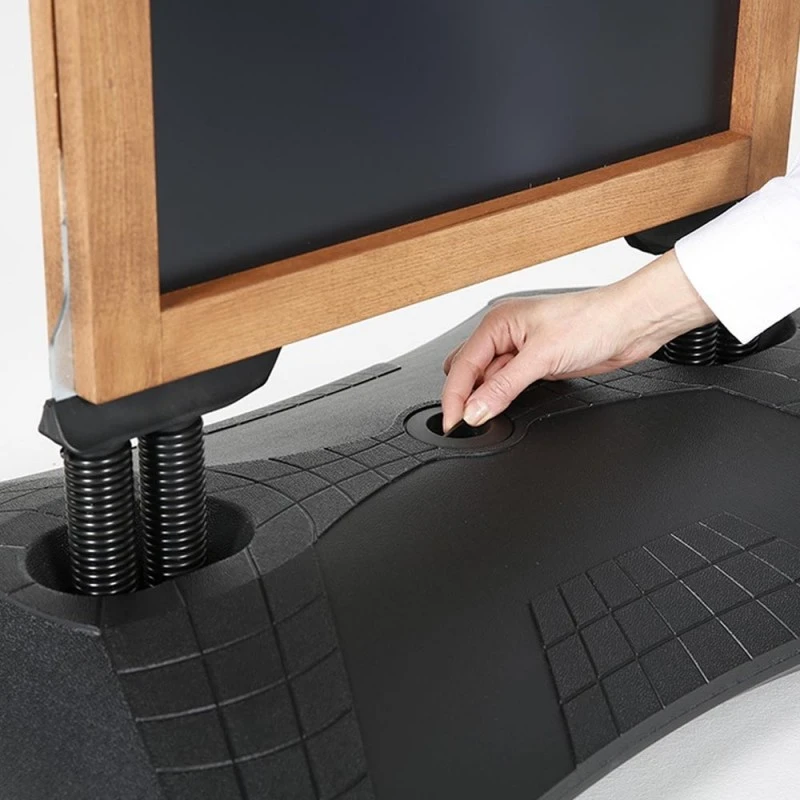 Inclus : 1 panneau ardoise double face avec encadrement en bois ; 1 base à lester (eau ou sable) couleur noire. Ardoise double face.