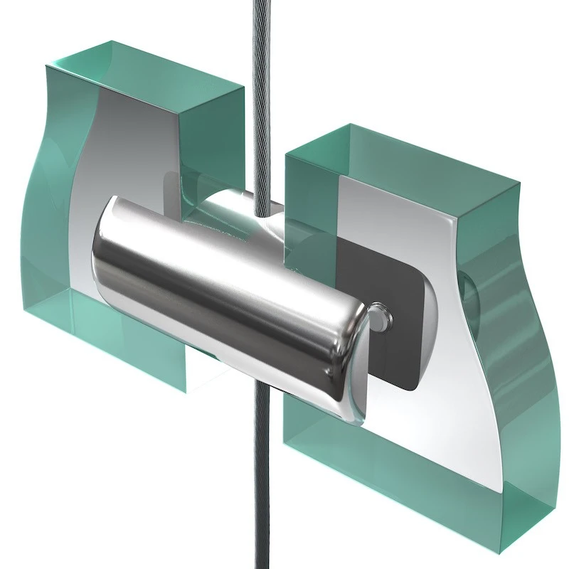 Le support panneau double 10mm permet de fixer un panneau d’une épaisseur maximum de 10mm sur un câble d’un diamètre de 1.5mm.